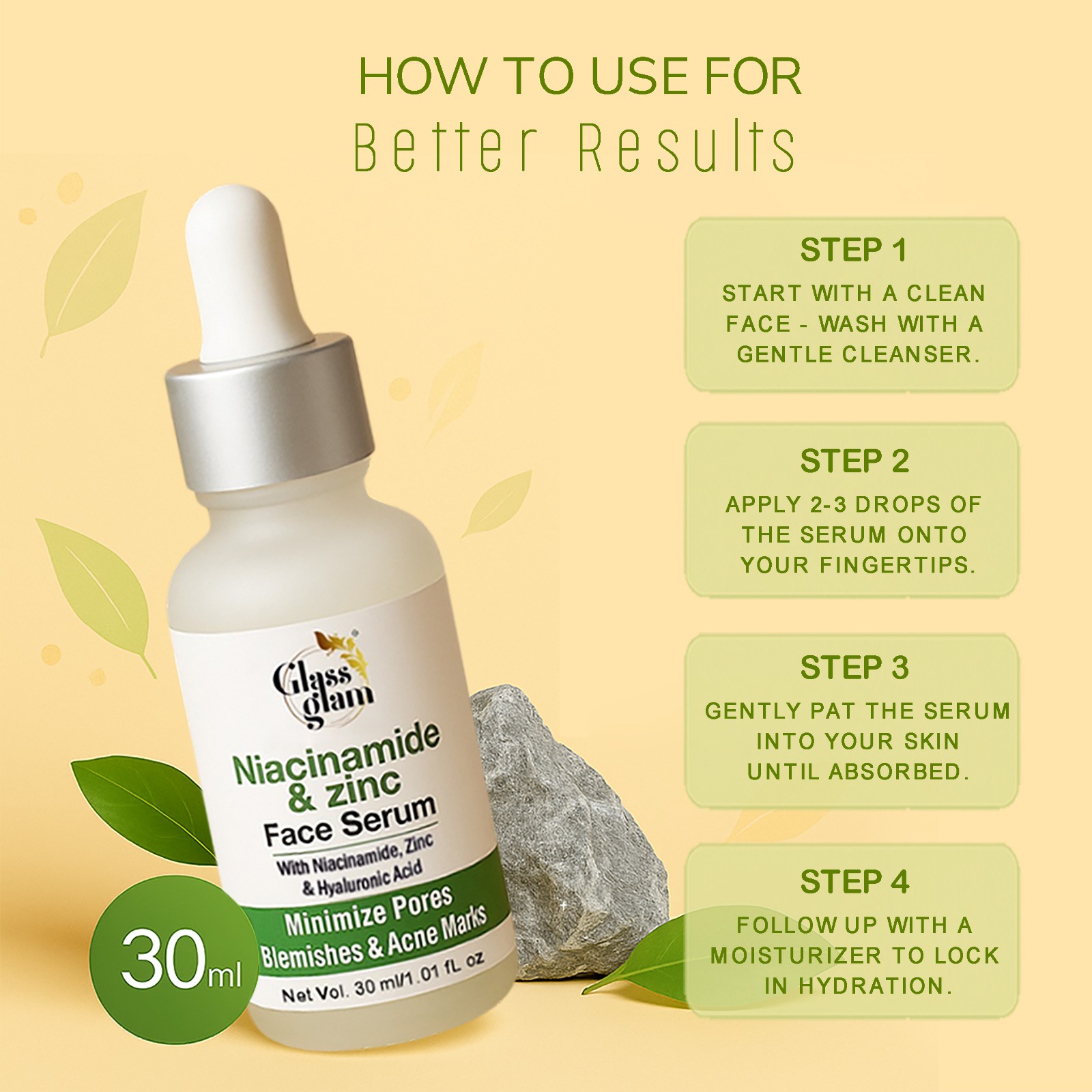 - Apply 2-3 drops of the serum onto your fingertips.